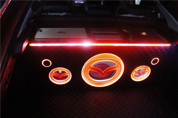 整个尾箱效果点睛之处在于灯光的合理应用,使得这套奢华的音响系统增添了几分神秘的效果。