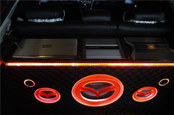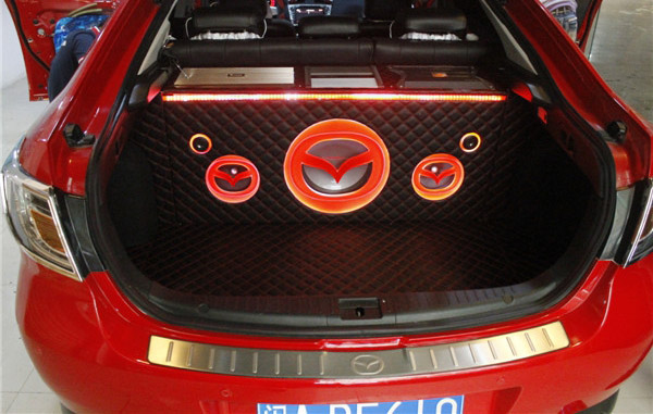 侧重点在于尾箱整体设计安装之上。对于马自达睿翼宽阔的尾箱空间而言,安装着几台功放和喇叭表面看起来并非难事。其实不然,在上海音豪改装店眼里,音响改装除了施工之外,改装更近似于作品创作!尾箱器材的安装工艺往往能体现改装店家对技术水平和施工细节的重视。