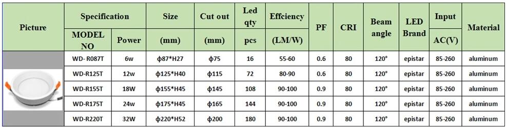 | Power: | 6W (12W, 18W, 24W, 32W also available) |