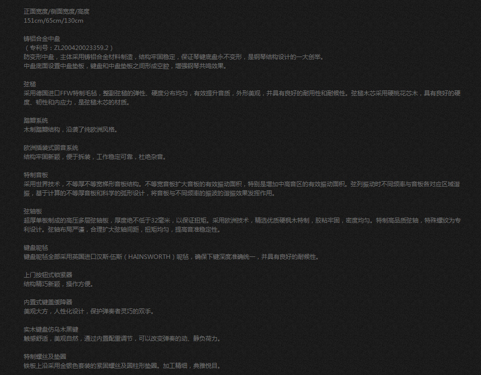 文德隆钢琴W180型号:W180