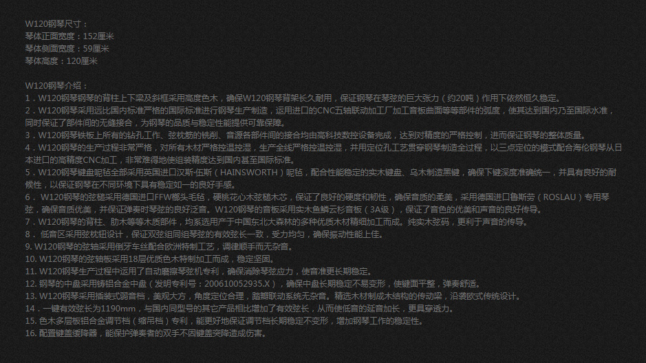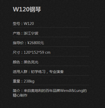 文德隆钢琴W180型号:W180